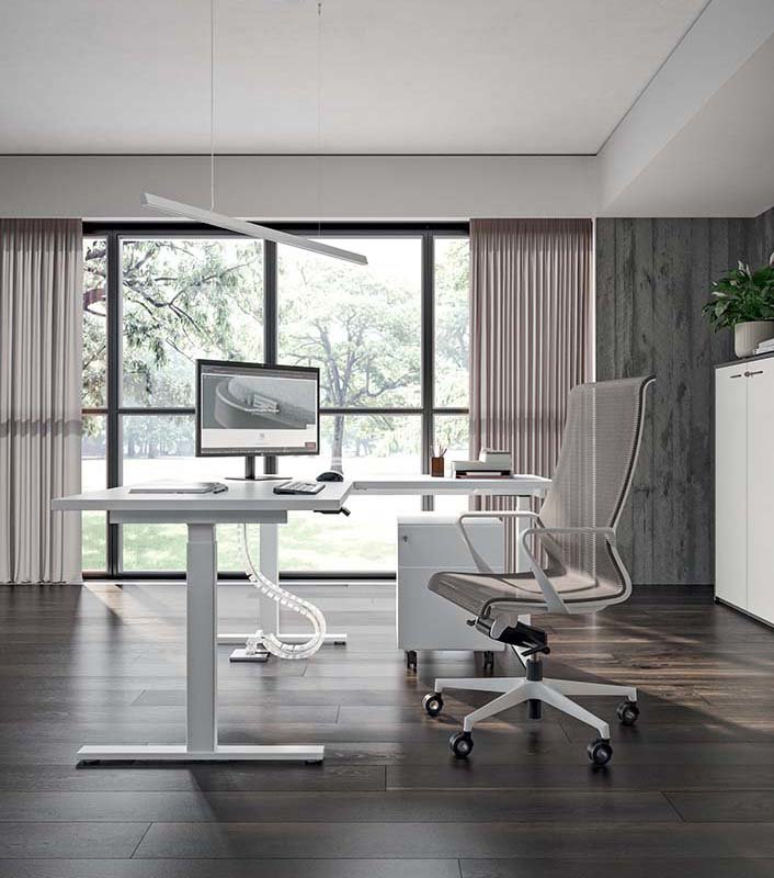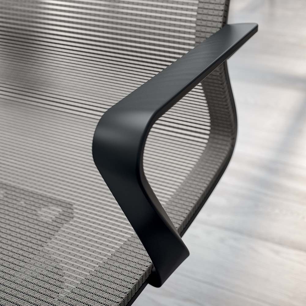 Moderne kontorstol betrukket med luftigt meshstof og med høj komfort.