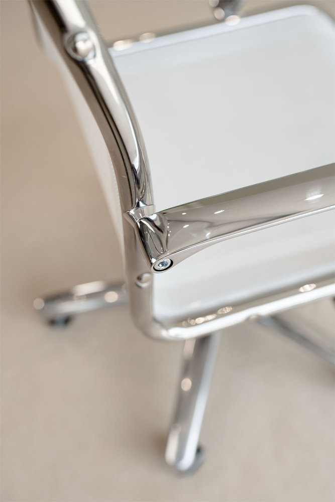 Forkromede armlæn og fodkryds i poleret aluminium.