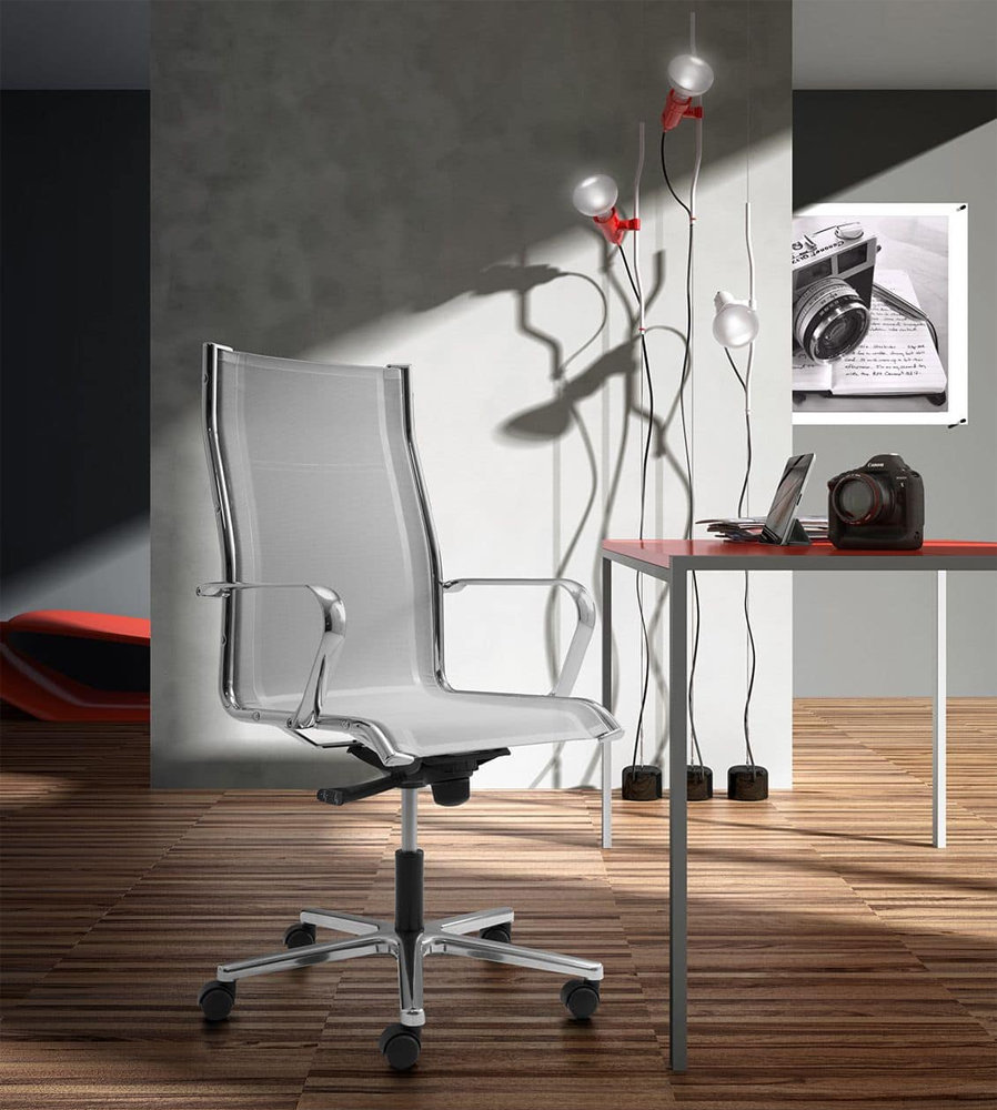 Velegnet stol for kontoret eller møderummet i køligt net-stof.
