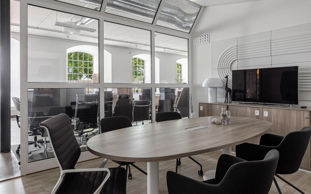 Ovalt mødebord til 4-6 personer med en længde på 200 cm.