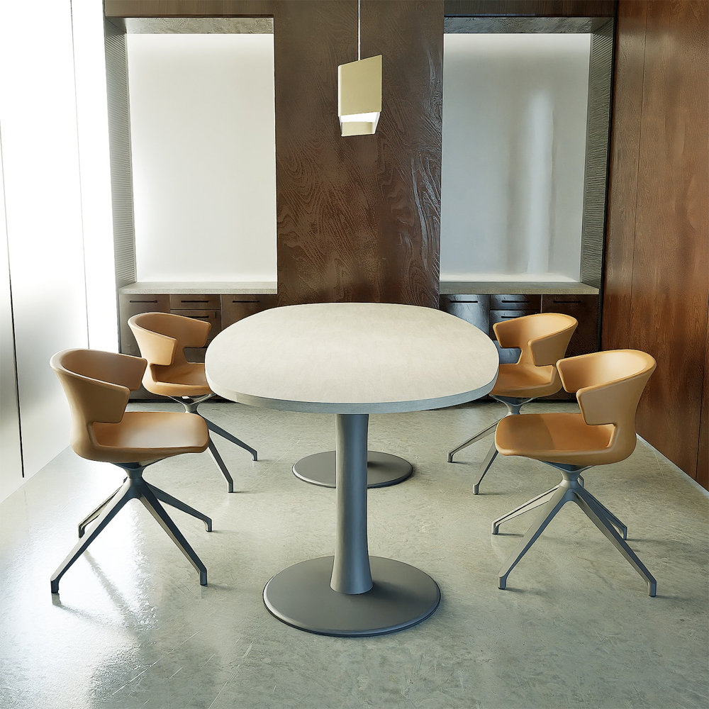 Ovalt italiensk konferencebord, der kombinerer moderne design med smart funktionalitet. Med de to tallerkenfødder får du et mere stabilt bord og samtidig mere plads under bordet. Der er ingen ben at tage hensyn til, når du møblerer med stole rundt om bordet.