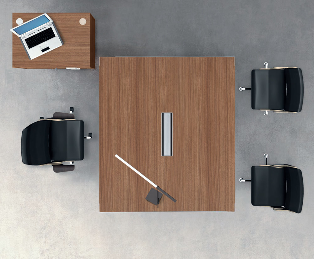 Eksklusivt italiensk mødebord med lige ben. Tynd elegant bordplade med affaset kant