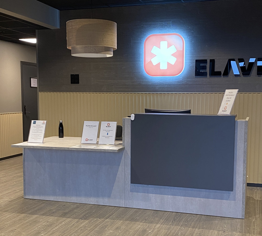 Lige receptionsskranke med en nedsænket del samt sidepaneler.
