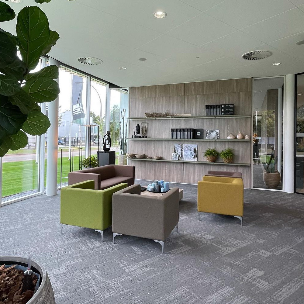flere forskellige miljøer som f.eks. venteværelser, loungemiljøer og eksklusive kontorer.