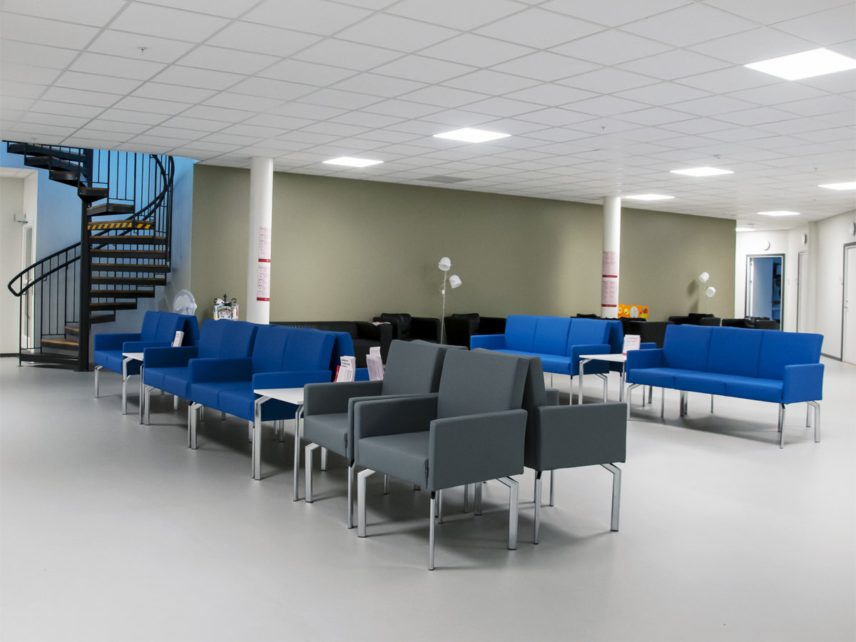 entréer, venteværelser, institutioner, dyrelægeklinikker, tandklinikkerkontorer osv.