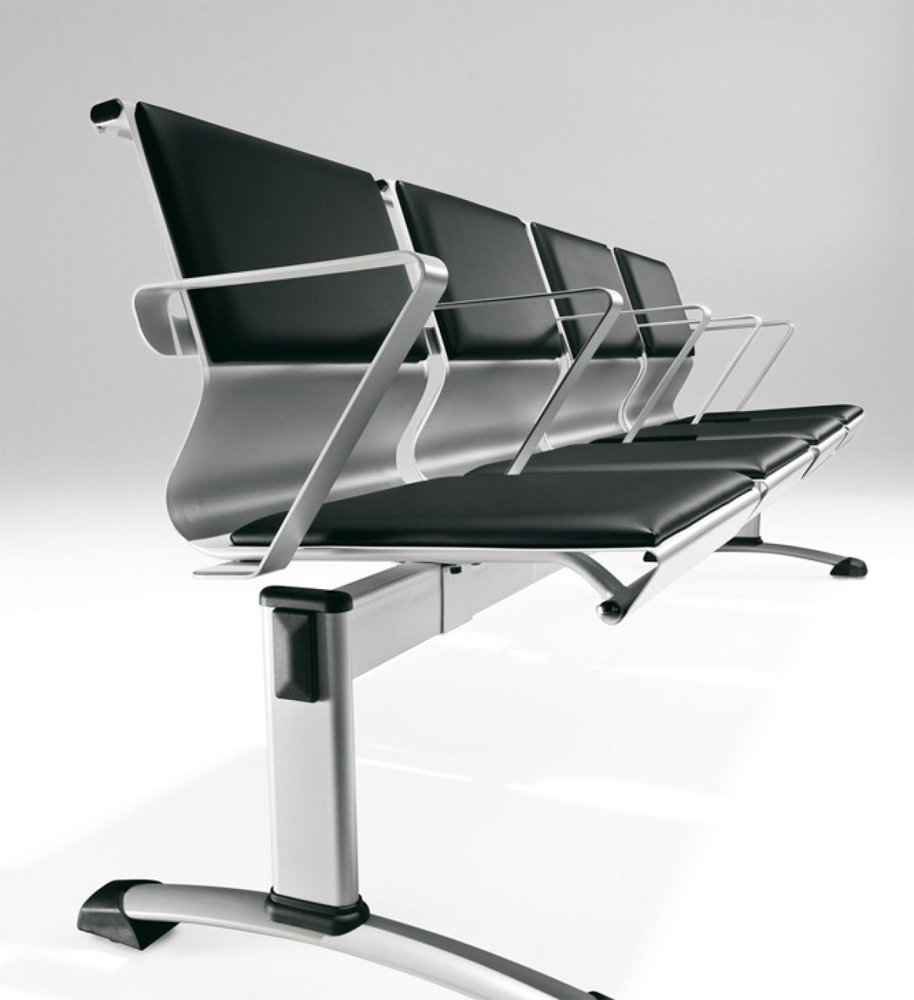 Cluster er en robust ventesofa med ramme fremstillet af 1,2 mm pulverlakeret stål i sølv. Sæde og ryg er betrukket med stof Mirage eller kunstlæder. Den er designet til at være elegant og nem at placere, f.eks. i venteværelset på en lægeklinik.